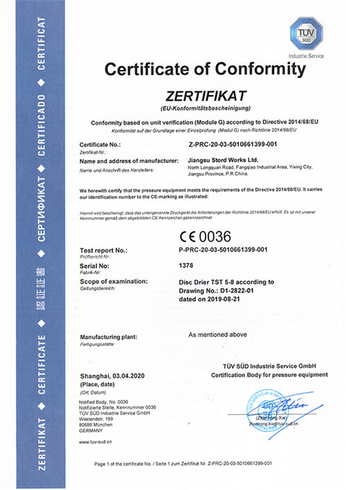 江苏斯道德机械有限公司(企业代码:652849)位于太湖之滨的江苏省宜兴市芳桥镇机械产业园,公司拥有职工260多人,占地面积60000㎡。各类制造、检测设备100多台套,行车起吊能力100T,卷板能力120mm。公司引进国内外先进的设备及技术,致力于开发和生产干燥机系列设备;蒸发浓缩设备;挤干、压榨系列设备;破碎及粉碎设备,螺旋输送混合设备;换热器系列设备;非标容器等设备;成套鱼粉鱼油生产线、肉骨粉生产线、环保污泥和废弃物成套生产线及EPC总包工程。